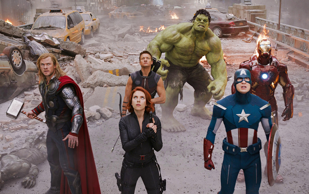 Впервые знаменитые герои Marvel объединились в команду Мстителей в 2012 году в фильме Джосса Уидона, завершившем первую фазу киновселенной Marvel. В нем Железный человек, Капитан Америка, Халк, Тор, Черная Вдова и Соколиный Глаз (Джереми Реннер) сталкиваются с угрозой в лице союза Локи и инопланетной расы Читаури.