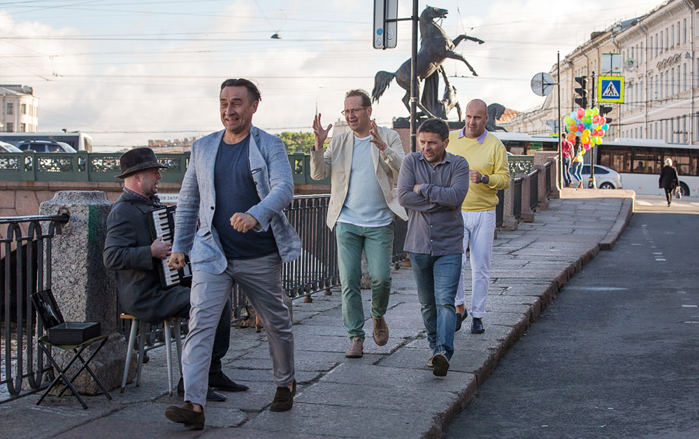 По сюжету четверо друзей Леша, Камиль, Саша и Слава неожиданно отправляются в Санкт-Петербург. Действительно, почему бы не махнуть в Северную столицу, заодно освежив голову и сбежав от проблем? Леша (Леонид Барац) затевает запоздалый подростковый бунт, отказываясь идти на день рождения к дяде Боре, Саша (Александр Демидов) спасает бизнес от банкротства, Слава (Ростислав Хаит) влюбляется в девушку намного младше себя, а Камиль (Камиль Ларин) не представляет семейную жизнь без ссор и ревности. Поездка в комфортабельном «Сапсане» идет своим чередом, вот только разговор друзей не клеится, антуража нет, как в Бельдяжках или придорожном кафе с шашлыком за 100 рублей. Случайно встреченная Виктория Боня не будоражит воображение – герои знают о ней только то, что «она известна своей известностью». Чтобы хоть как-то развеселиться, герои отыгрываются на шумной компании немцев в ресторане, доказывая «что русскому хорошо, то немцу плохо». Долгожданная эмоциональная встряска с героями происходит, когда они пропускают свой поезд. Старая железнодорожная станция, комары, тишина, а позже обшарпанный поезд «Адлер-Мурманск» – вот что нужно героям для лиричной исповеди. Старый поезд становится для героев своеобразной машиной времени, где играют песни Софии Ротару и Иосифа Кобзона, традиционно храпит бабушка, а памятная надпись на столе еще не стерлась. «Мне вот пять лет было, а Кобзон тогда уже казался старым», - сетует Саша, подмечая, что прошлое стало настоящим.