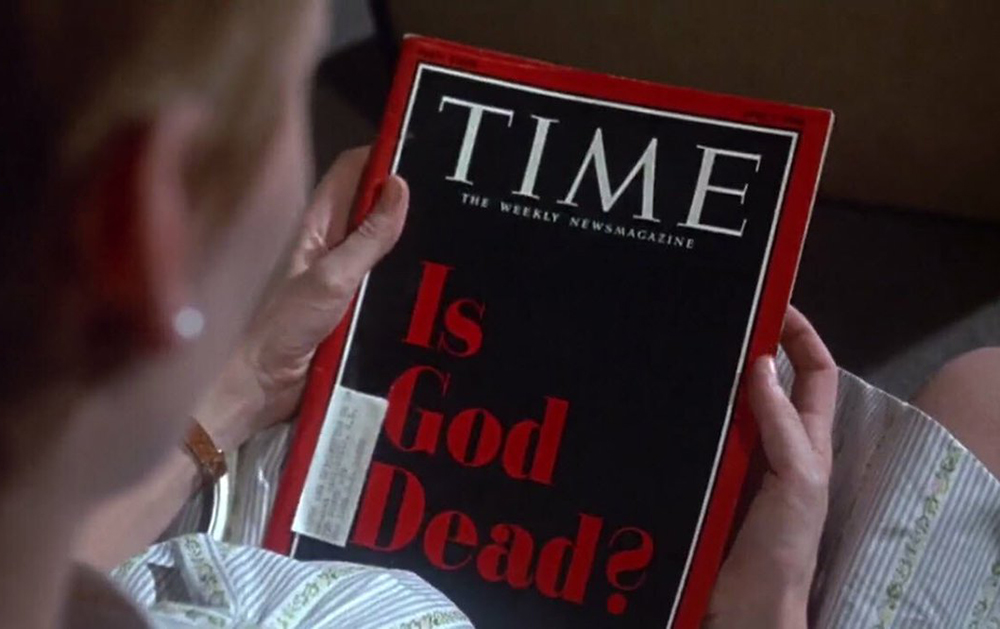 «Квартирная трилогия» Романа Полански насквозь метафорична. «Отвращение», «Жилец» и «Ребенок Розмари» – фильмы об одиночестве, отчуждении, подавлении воли, отупляющем сумасшествии и мученичестве, пусть и добровольном. И здесь режиссер будто бы иронизирует над феминизмом. Женщина по собственной глупости отдается на растерзание тайному культу, в том числе и мужу Гаю, который сам становится шестеркой общества. Картина явно рассказывает о мире безбожия, где даже соседи – фанатики. Налицо абсолютный нигилизм. Персонажи богохульствуют, заявляя о смерти Бога, а Розмари держит журнал Time с тревожным, риторическим заголовком на обложке: «Бог умер?». То ли идеологическое заявление, то ли замаскированное требование, призыв, который усиливается победоносным криком Романа Кастевета в финале, отчего делается по-настоящему дурно.