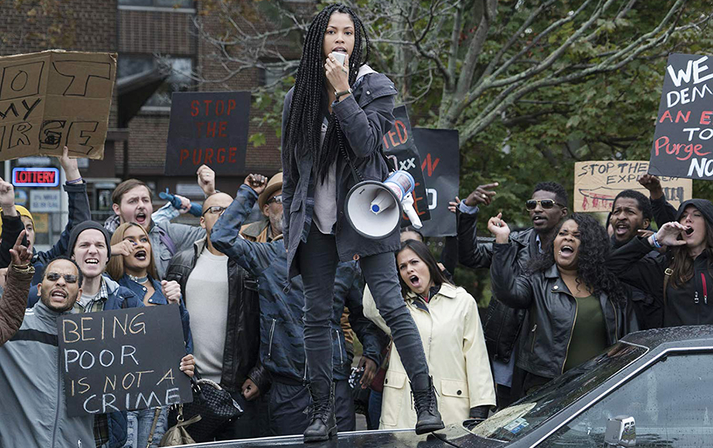 Автор сценария и режиссер первых трех фильмов Джеймс ДеМонако, написавший сценарий и к новой «Судной ночи», уже показал перерождение нации, для которой мясной маскарад – новая религия, для которой благословение зиждется на кровопролитии, показал и варварское насилие, и политические дебаты, и корпоративный цинизм. ДеМонако даже демонстрирует, что страной правят фанатичные сектанты, которые «убивая, очищаются». Нетрудно заметить сознательно сделанные аллюзии якобы на трамповскую Америку. Во всяком случае, голливудские выдумщики старательно выдают историю о Чистке за возможное будущее сегодняшней Америки, которую и те, и другие желают сделать снова великой. Можно подумать, демократы – святые пацифисты. Те же яйца, только в профиль. Тираническое будущее? Скорее, и прошлое, и настоящее, но «Чистка», не стыдясь, являет свой средний палец именно республиканцам.