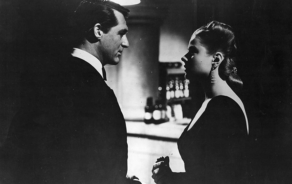 Главная сцена в фильме – тайное проникновение в винный погреб, где Бергман и Грант рассматривают бутылки, одна из которых потихоньку соскальзывает (пара этого не замечает – только зритель) и разбивается вдребезги. Оказывается, в бутылках хранится урановая руда для атомной бомбы. Между тем, наверху, на вечеринке, заканчивается шампанское, и дворецкий сообщает хозяину, мужу главной героини, что пора спуститься в погреб. Напряглись?