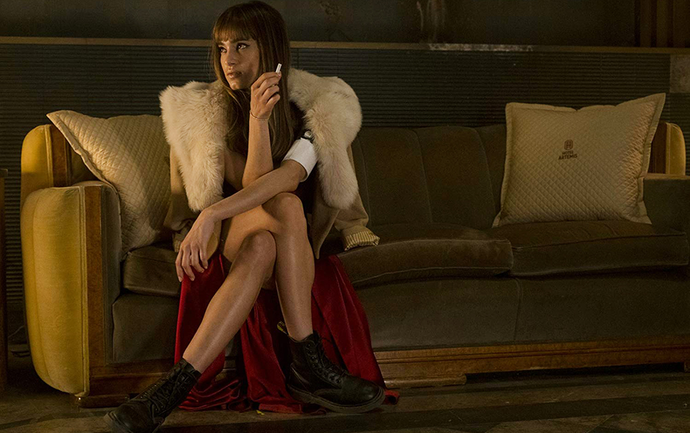 Прежде всего, «Отель "Артемида"» берет атмосферой и актерами. Врач – седовласая Джоди Фостер. Пожилой даме помогает суровый, но добрый бугай Дэйв «Эверест» Батиста. Постояльцы гостиницы, среди которых дерзкий американец-коксонюх и «первоклассный стейк» в Gucci Чарли Дэй и загадочная роковая леди София Бутелла, должны следовать строгим правилам. Хочешь остаться – плати, но никогда не смей убивать других гостей, ведь мы же помним, «Отель "Артемида"» – убежище для криминала, жаждущего крови. Было бы желание, а оружие найдется. Зрелищного экшена, надо сказать, здесь всего ничего: Батиста странным образом остается в тени, невзирая на грозный образ, зато французская соблазнительница Бутелла в багровом платье проявляет себя в мрачном коридоре, что не может не напомнить знаменитую драку из «Олдбоя». Хотя и тут боевиковость скромнее.