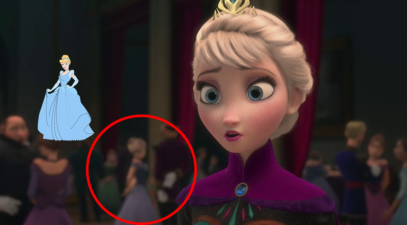 В «Холодном сердце» также не обошлось без появления гостей из самых разных мультфильмов. Так, на бал приглашены Рапунцель и Флинн из мультфильма «Рапунцель: Запутанная история», Тиана и Навин из «Принцессы и лягушки» и Золушка, а в сцене, где принцесса Анна покупает сапоги на столе у продавца, можно увидеть фигурку Майка Вазовски из «Корпорации Монстров».