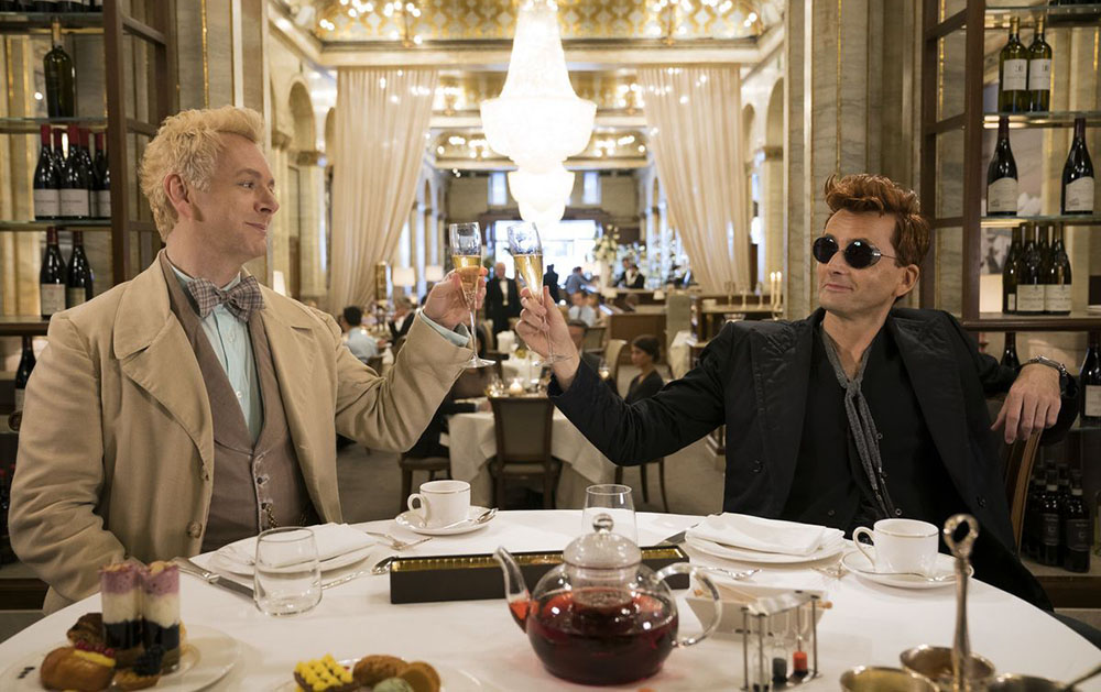 Ленту можно охарактеризовать как фэнтезийное бадди-муви с ангелами и демонами. В центре сюжета оказывается колоритный дуэт демона Кроули и ангела Азирафеля, которых безукоризненно исполнили Дэвид Теннант и Майкл Шин. Однако обычными ангелом и демоном их назвать сложно, да и сам факт их сотрудничества и дружбы как-то не вписывается в общепринятые рамки отношений подобного рода. Более того, этим колоритным ребятам, похоже, действительно нравится жить среди людей: робкий и вежливый ангел держит книжный магазин и, как любитель вкусно поесть, с удовольствием захаживает в разные кафешки, а раскованный демон с шикарной (просто блеск!) походкой разъезжает по дорогам Британии на любимой машине под музыку Queen и странным методом ухаживает за цветами.