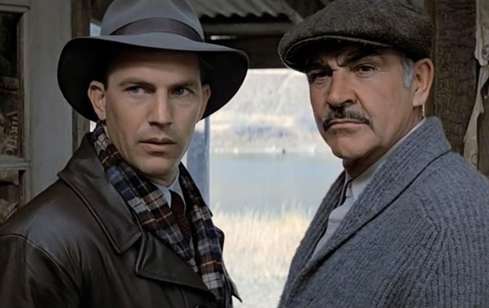 Первой во всех смыслах большой и громкой ролью Кевина Костнера стал устроивший охоту на легендарного гангстера Аль Капоне федеральный агент Элиот Несс в криминальном триллере Брайана Де Пальмы «Неприкасаемые». Костнер не был первым выбором на роль Несса, так как на тот момент он попросту не был достаточно известным – это и смущало режиссера и продюсеров картины. Поэтому роль предлагали другим актерам, среди которых был Дон Джонсон, в свою очередь отказавшийся от участия в проекте. Роль в итоге досталась другу Джонсона – Кевину Костнеру. Тот поздравил его с этим, но, чтобы не расстраивать Костнера, так и не признался ему, что сам некоторое время назад ее отклонил.