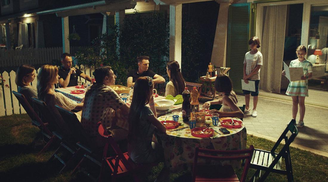 Семейный ужин. Стол накрыт на веранде, приглашены соседи, идиллия. Родители разговаривают на свои взрослые скучные темы о работе, деньгах и жизни. Дети молчат, не пытаясь сказать и слова. Вдруг отец Денниса и Алессии просит их принести школьные дневники и показать гостям свои успехи. Его сын и дочь учатся на одни пятерки с плюсом, поэтому ему очень хочется похвастаться этим. Испуганные, но больше даже непонимающие, Деннис и Алессия встают перед столом, как будто отдавая рапорт военачальнику.