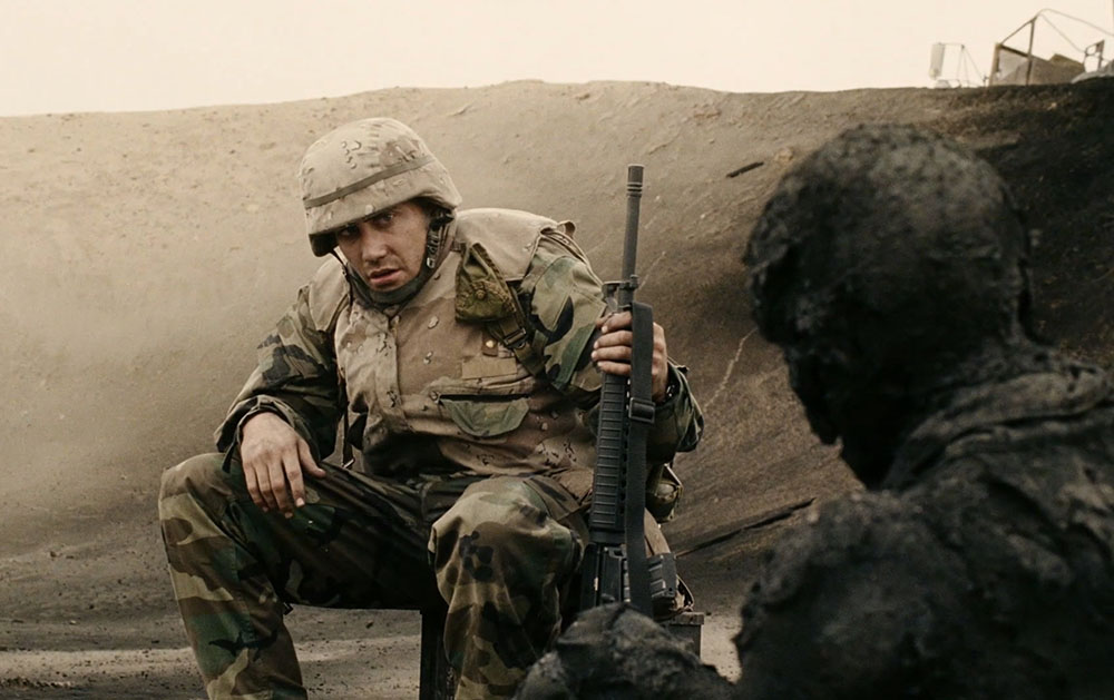 Может ли солдат быть застрелен на учениях? Празднуют ли бойцы окончание войны, танцуя у костра и стреляя в ночное небо? Оказываются ли морпехи брошенными и забытыми в пустыне? Не видел, не знаю. Мы также не узнаем, почему Саддам нападает на Кувейт, а Америка бомбит Саддама, которого долгое время называли самым опасным человеком в мире. Но как заявил один персонаж: «Fuck politics». Режиссеру интересно показать людей, которые в поисках смысла бежали от бессмысленности, а попали в бессмысленность. Убивая время, они убивают жизнь. «Таково было наше задание. Мы ждали», – омрачен солдат, который так ни разу и не выстрелит. Потом, правда, выясняется, что задание другое – защищать чужую нефть. Кажется, за пошлыми шутками можно разглядеть и серьезный разговор.