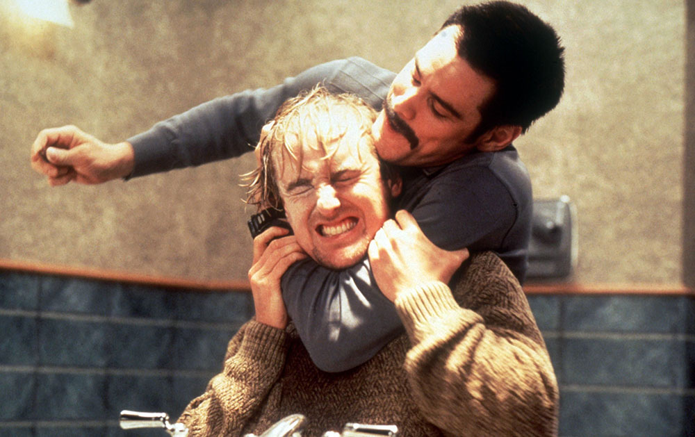 После дебюта «Реальность кусается», одного из культовых фильмов поколения «Х», Бен Стиллер поставил мрачную комедию с похожим на маньяка Джимом Керри. Правда, Стиллера здесь почти и нет, хотя роль брошенного бойфренда – то, что он обычно играет, но здесь этот образ отдан Мэттью Бродерику. А солирует Джим Керри как дико навязчивый, воспитанный телевизором кабельщик. Виртуозное кривляние Керри выглядит не столько смешным, сколько страшным, и эта жуть делает абсурдную сатиру особенной в карьере как Стиллера, так и Керри. Оба актера, которых нередко обвиняют в пошлости, идут против ожиданий зрителя: вместо глупой комедии о странном чудаке, получилось заявление о восприятии мира через одержимость поп-культурой, которую Стиллер позже высмеял в пародийных комедиях «Образцовый самец» и «Солдаты неудачи». Кстати, «Кабельщик» – единственный поставленный Стиллером фильм без него в главной роли.