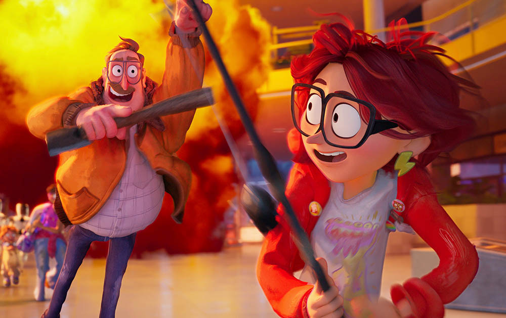 Занимательный, местами чудаковатый сюжет с забавными персонажами эффектно оживает на экране благодаря своеобразному, выполненному на качественном уровне и проработанному в деталях стилю анимации. Благодаря ему и толковой постановке на экране появляются просто отменные моменты, как, например по-своему атмосферная и драйвовая сюрприз-сцена с игрушками Ферби в торговом центре. Единственный нюанс, который в визуальной стороне мультфильма «Митчеллы против машин» все-таки смущает, – это обилие дополнительных эффектов, фильтров и стикеров, которые время от времени накладываются на основное изображение. Если в, пожалуй, лучшем мультфильме студии «Человек-паук: Через вселенные» дополнительные эффекты максимально гармонично работали на общий стиль, то используемые в «Митчеллах против машин» приемы чаще всего выступают лишним элементом и без того довольно яркой анимации. Однако в век мобильных приложений со всевозможными фильтрами и стикерами некоторым зрителям эти броские визуальные дополнения, наверное, могут показаться чем-то веселым и вполне уместным.