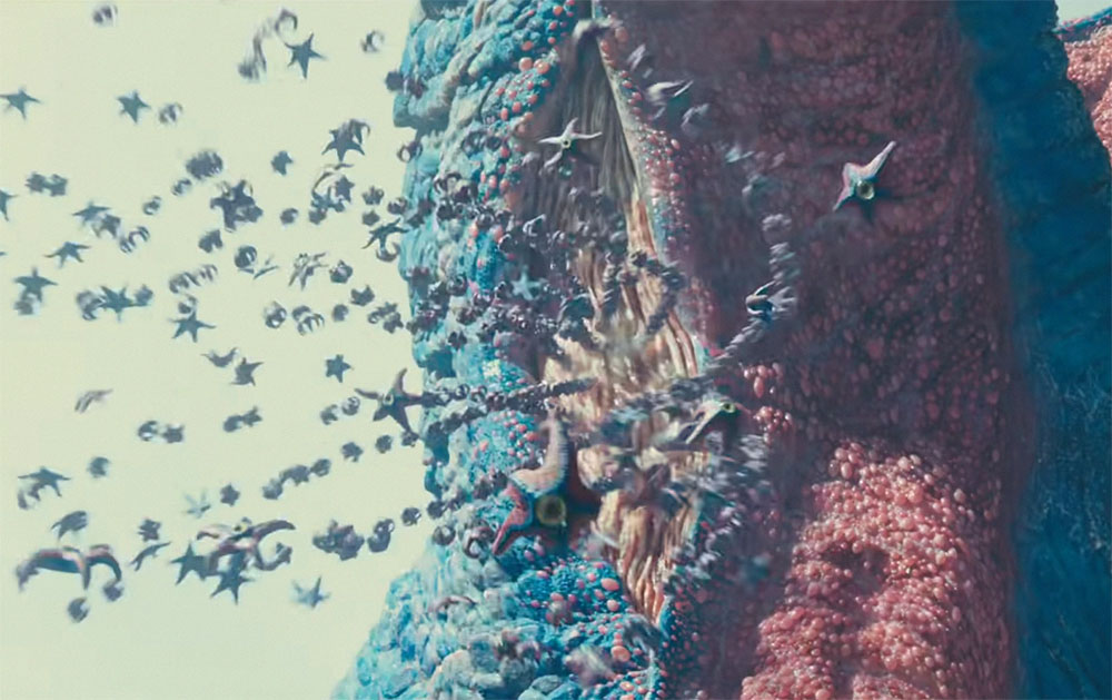 В «Отряде самоубийц: Миссия навылет» Отряду с трудом удалось одолеть Старро. Для Человека-в-Горошек (Давид Дастмалчян) мощная атака на злодея и вовсе стала первым и… последним супергеройским поступком в жизни – потом гигантская звезда раздавила его. Ни укусы Короля Акул (Сильвестр Сталлоне озвучил в оригинале, Элджей – в русском дубляже, а в костюме для захвата движений расхаживал Стив Эйджи), ни выстрелы Бладспорта не причиняли особого вреда Старро.