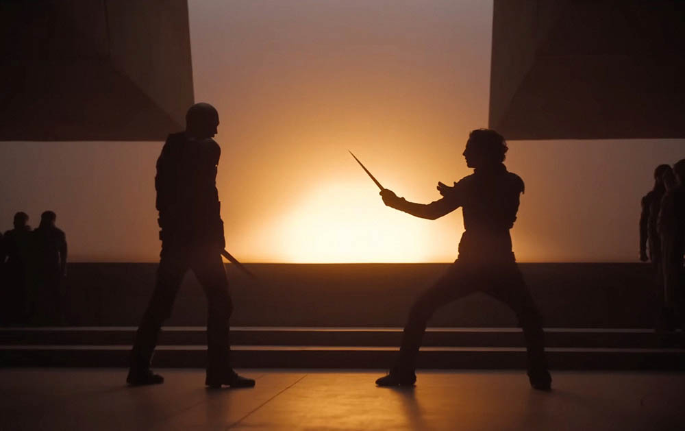 Эпизоды, которых в особенности ждут фанаты книги – эпичный и смертельно опасный заезд Пола на песчаном черве, или Шаи-Хулуде, – перед ним Пол шутливо обещает Стилгару «не выделываться», – и его схватка с Фейд-Раутой. Оба становятся символическими лидерами Атрейдесов и Харконненов – они просто обязаны столкнуться не на жизнь, а на смерть. Фейд-Раута – угроза для фрименов, и это подводит к фразе Пола, хорошо знакомой прочитавшим «Дюну»: