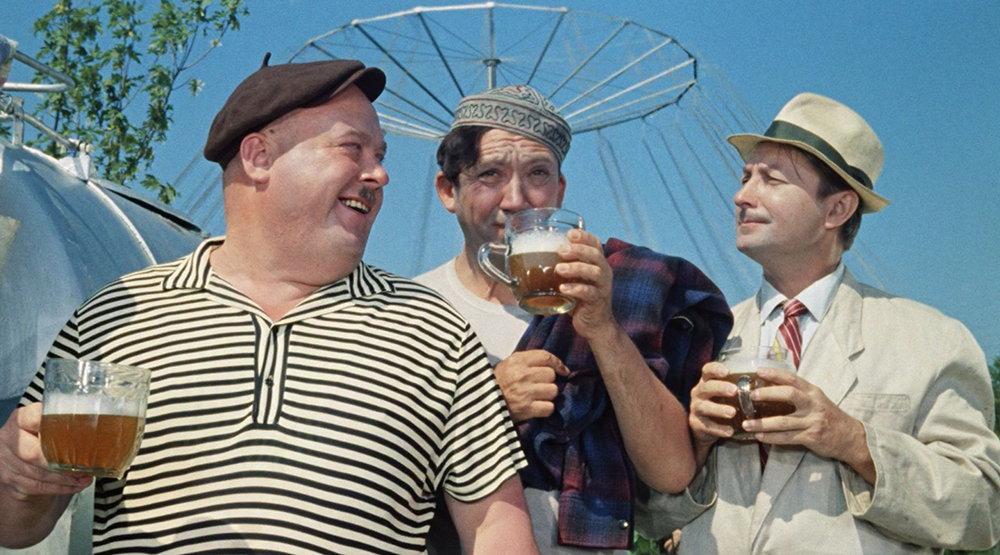 Помните сцену, где Трус, Балбес и Бывалый потягивают пиво? Моргунов и Никулин очень радовались ее съемкам, а вот Георгий Вицин, принципиальный трезвенник, отказывался пить в кадре настоящее пиво. Съемочная группа перепробовала множество хитростей. Так, актеру наливали в стеклянный стакан отвар шиповника, похожий по цвету на пиво, но из-за отсутствия пенки этот вариант не подошел (при том, что у Балбеса и Бывалого пена чуть ли не оставляла усы). Потом попробовали налить отвар в непрозрачную тару, но это плохо смотрелось в кадре. В итоге Гайдай уговорил Вицина выпить пиво в этой сцене. К счастью, сняли все за один дубль.