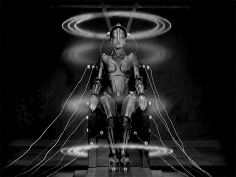 Наверное, чуть ли не главным роботом первого 50-летия после зарождения кинематографа была человек-машина из антиутопической беспрецедентной картины «Метрополис» немецкого режиссера Фрица Ланга. Созданная по сюжету фильма изобретателем Ротвангом как образ женщины, в которую он был влюблен, и как воплощение идеального человека она в конце концов становится неконтролируемым оружием в руках потерявшего связь с реальностью ученого. Стоит отметить, что для того времени дизайн робота, слепленного архитектором Вальтером Шульце-Миттендорфом из особого пластика, кажется совершенно фантастическим и просто поражает детальностью проработки.