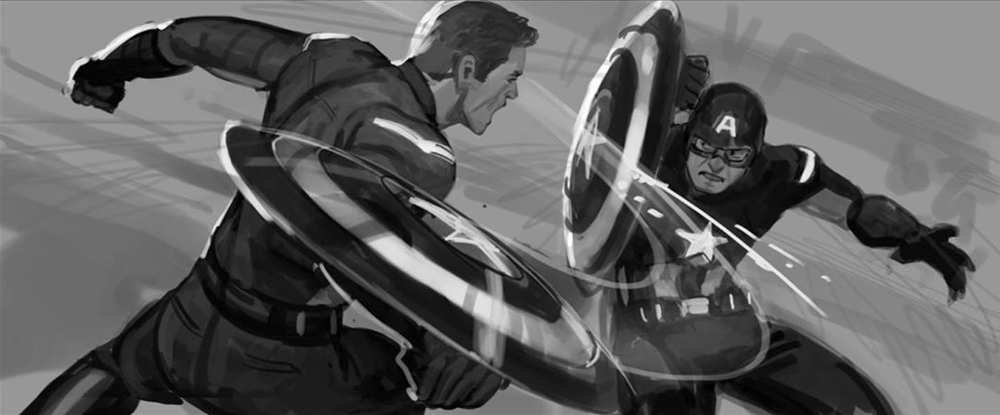 Кстати, автор выложил и такой концепт-арт, с битвой двух Кэпов: