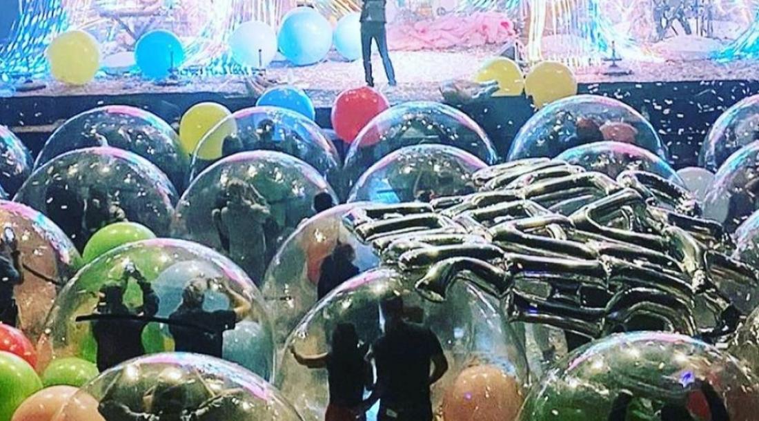 Внутри каждого из пузырей располагался специальный динамик, предотвращавший звуковые помехи, а также бутылка воды, вентилятор и таблички со словами «Мне надо в туалет» и «Здесь жарко». Если человеку было жарко, то его пузырь наполнялся прохладным воздухом. А во время походов в туалет зрителей сопровождали сотрудники площадки (ношение маски при этом было обязательным).