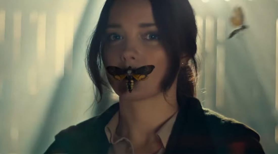 В новом ролике Кларисса Старлинг в исполнении Ребекки Бридс напомнила нам об истории из своего детства, когда она пыталась спасти ягненка на скотобойне. Как знаем, эта тема стала как бы метафорой сюжетной линии героини Джоди Фостер в фильме «Молчание ягнят». В ролике также есть мотыльки, которые были неотъемлемой частью «Молчания ягнят». Неожиданной оказалась сцена с мотыльком на губах Старлинг: