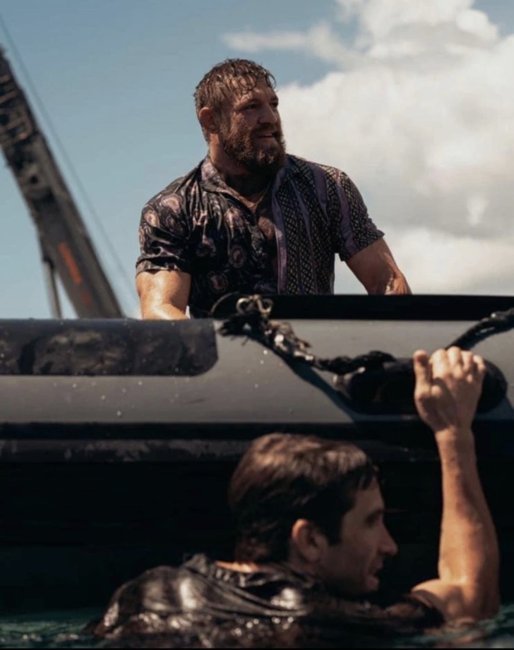«Придорожная закусочная» станет первым фильмом в карьере Конора Макгрегора. Поскольку Макгрегор – боец смешанных боевых искусств и бывший чемпион UFC, то стоит ожидать от него эпичных сцен с битвами. По кадрам можно предположить, что герои Джилленхола и Макгрегора будут вместе бороться с преступниками. Впрочем, они могут оказаться и врагами – вдруг подерутся на этой самой лодке.
