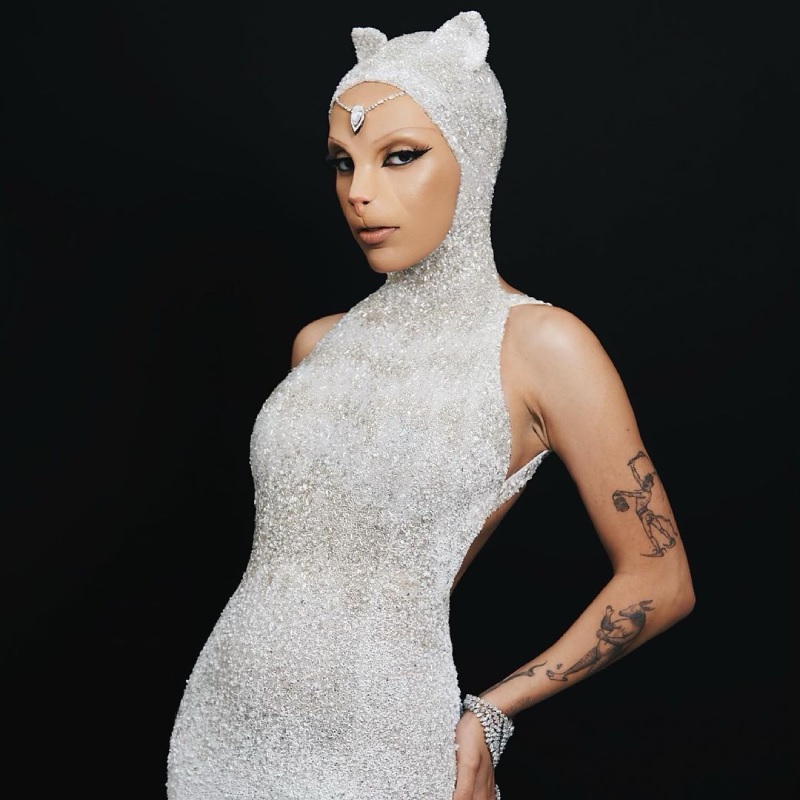 Doja Cat тоже любит этих животных, слово «кошка» (cat) даже есть в ее псевдониме. У рэперши есть две кошки – Алекс и Рэймус. Как и Лагерфельд, она очень привязана к питомцам: в 2022 году Doja Cat даже пообещала расправиться с вороной, напавшей на ее кошек. Яркие образы артистка тоже любит: так, в январе она появилась на Парижской неделе моды в необычном наряде из кристаллов.